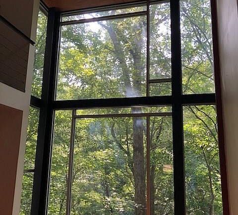 Available now. WOW! Unbelievable retreat in a secluded setting! This 3 story contemporary home is a MUST see! Very open floor plan with tons of sunlight streaming into every room. Views of the wooded yard from every window. Hardwood floors and granite counters in the gourmet kitchen open to the living room. Contemporary lighting throughout with a stunning two story all glass window. Very private setting with a long and winding walkway that leads to the steps of this unique home. Wait till you see!