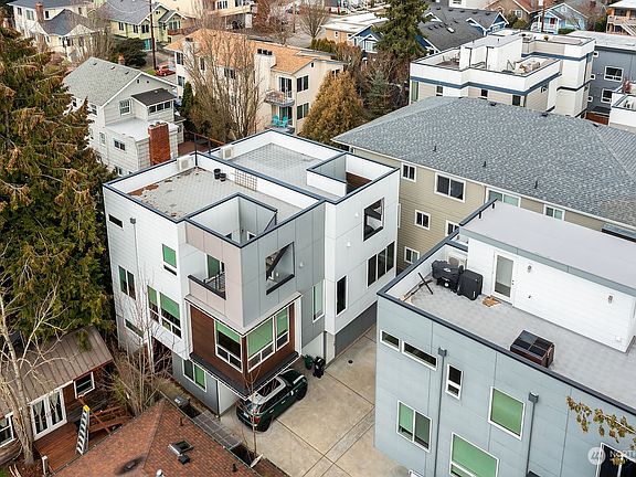 Sophisticated modern townhome in the heart of Seattle's Fremont neighborhood!  One block from shops, restaurants, entertainment and transit right out your front door.  Well designed floor plan with designer finishes, floating staircases and an abundance of natural light. Chef's inspired kitchen includes oversize island and stainless appliances.  Primary suite features walk-in closet and spa inspired bath with heated floors.  Entertainers rooftop deck with stunning views of city, mountains and Lake Union.  Parking, car charger, small back yard and storage included.