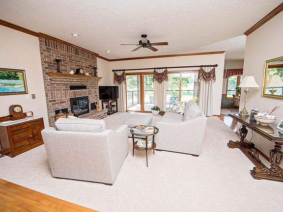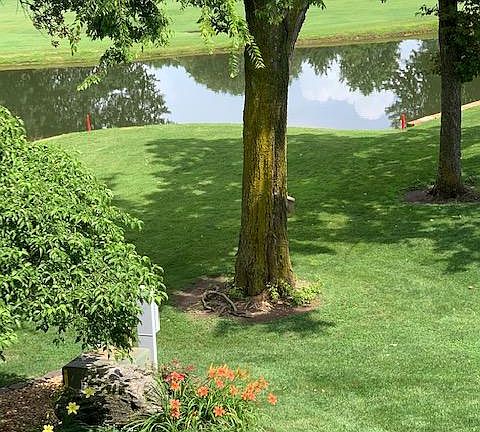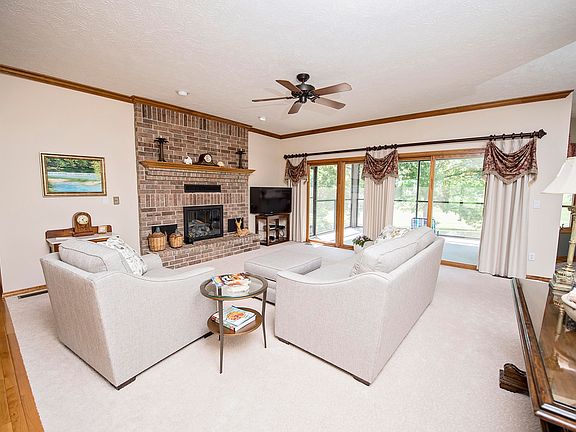 Beautiful home with one of the best views in Fremont Hills of the 11th green and water. Immaculate, well-cared for home built by Larry Bannister. HVAC is a closed-loop geo-thermal so utilities are amazing! Updated roof in '09, '10 heat pump, '19 fan motor. Kitchen was remodeled 5 yrs ago: cabinets painted, stainless Jenn-Air down draft, granite and backsplash added, sizeable and attractive! Great floor plan with 3 bdrm (one office, one ensuite ''split'' configuration) on the main and a main floor laundry room. John Deere room ducted with golf cart drive and a giant family room/bar in the bsmt. Fall in love features: 9ft ceilings, screened second story porch, 6-panel doors extra wide, fun country club lifestyle with no HOA fees but various Fremont Hills memberships available.