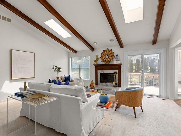 Lovely ranch home w/a 2 car garage located in sought after neighborhood & great location. The entry foyer leads to the dining room & opens to the spacious great room that features vaulted & beamed ceilings, fireplace & sliding doors opening to the expansive deck. The tasteful kitchen includes stainless appliances, breakfast room, bay window & adjoins the 3 seasons porch (main floor laundry off kitchen too!). The primary suite also has access to the deck & offers a large primary bath w/ double vanity, soaking tub & separate shower. Additionally, there are 2 nice size bedrooms & 2nd full bath. The walk-out LL is awesome & has so much extra living space. The rec room is perfect for entertaining w/the pretty fireplace & wet bar. Not only is there a 4th bedroom & 3rd full bath but there are a couple other finished spaces that would lend well to a home office, gym or even another bedroom if needed. This is a delightful home that has new carpeting & fresh paint throughout. GREAT PRICE!