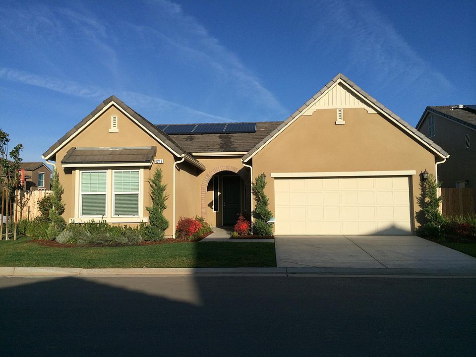 Harlan Ranch home featuring an open living space for the kitchen, dining, and living room. Tile floors throughout except for carpets in the bedrooms. Granite countertops kitchen and baths. Inside laundry room with washer and dryer. Corner lot. Technology: Smart audio package with docking station and speakers, video RG6 wiring. Solar panels. Safety: Fire sprinklers, whole house fresh air system, low VOC paint for improved air quality, extra formaldehyde-free insulation. Recreation: 8 parks within Harlan Ranch, walking trails, club house with pool for residents. Social events planned monthly and may include trips, classes, fun get togethers, etc. ==Right off Hwy 168 and Shepard== Owner pays HOA fees, biweekly yard maintenance, bimonthly pest service