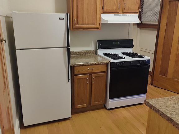 4 room, 1 bedroom, 1 bath apartment on the 1st floor. Hardwood floors, cabinet kitchen. A/C units. Laundry in the basement. Close to the Blue Line L and expressways. Heat is included in the rent.