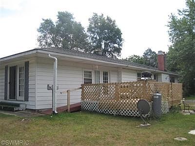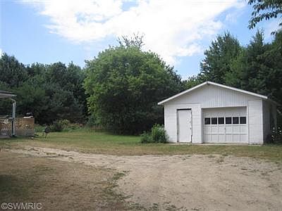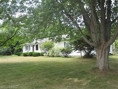 Ranch with frontage on M66. House sets back off the road with a nice sized front yard and seclusion in the back. 2 Bedrooms and 2.5 Baths. Partially finished basement. Detached Garage. Wood Fireplace in the Living room to help with the heating bill. Main Floor Utility.