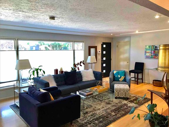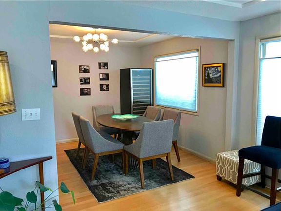 Spacious, fully-remodeled mid-century modern home in NE Portland, featuring two fire pits, a bocci ball court, Nest with central air conditioning, refinished original hardwoods, fully stocked gourmet kitchen, 3 bedrooms and spacious custom bathroom. BACKYARD SHARED W/COMPLETELY SEPARATE BASEMENT ADU TENANT. The main level boasts tons of natural light with floor to ceiling windows in the expansive living room with wood burning fireplace, dining room with wet bar, and a large bathroom with custom double headed shower and double sink. Gourmet kitchen is fully equipped with all cooking necessities: 6 burner gas range, double oven, garbage disposal, dishwasher, stainless steel fridge and heated floors. Three bedrooms on main floor include master with separate backyard access, second bedroom with French door separate backyard access, and third bedroom. Fenced front patio has a private gas fire pit and double car driveway provides on-site parking. Quiet location in NE Portland's Roseway area, 7 minutes to PDX airport, 6 miles to downtown, minutes to Safeway or Rite Aid, restaurants, bars, coffee shop, and the I-84 or I-205 freeways. Plenty of free street parking available. Common areas shared w/separate basement ADU tenant: large fenced backyard w/wood burning fire pit and full sized bocci ball court for hours of entertainment, and full-sized garage. 1 year lease term. Tenant responsible for proportionate share (based on occupancy) of gas, electric, water/sewer, and garbage/recycling ($200/month average). Up to two well-behaved pets ok with $40/pet/month fee. No smoking in the house. Must be mindful of neighbors and basement tenant (ie. no excessive noise).