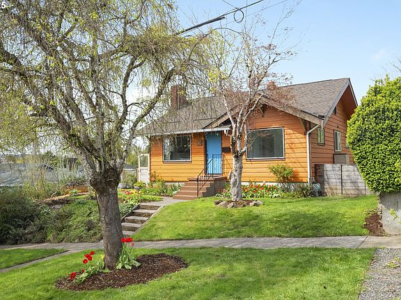 This adorable bungalow is brimming with original charm and updates! Light-filled rooms, original oak floors, and huge picture windows to take in the garden views. An open bright living room with original wood burning fireplace, an updated kitchen with the sweetest dining nook, and a primary bedroom that flows out to an incredible deck overlooking the backyard and treetop views. Front and back yards filled with spring flowers and garden beds, and a patio to enjoy summer nights. Newer roof, A/C, paint, and deck. Plus plenty of storage and potential in the basement, and a two-car garage with alley access. Keeper Coffee, Cafe Rowan, and Coffee Beer are right around the corner, with Trader Joe's and Kenilworth Park just down the road. Plus Woodstock and Foster shops each less than a mile away. This gem has it all! [Home Energy Score = 4. HES Report at https://rpt.greenbuildingregistry.com/hes/OR10083248]