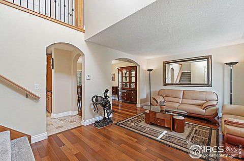 Introducing this sun-drenched home with beautiful curb appeal and many fantastic features and upgrades! This is an ideal floorplan if you value an open main floor yet need 4 bedrooms on one level or want multiple home-office or study rooms. Presenting stunning Mahogany floors, custom tile, new carpet and fresh paint. You'll appreciate the formal living and dining rooms, a large eat-in kitchen with views of Horsetooth rock, and sizable family room w/custom gas fireplace and built-ins. A lovely en-suite master with 5-piece bath, laundry room with sink/cabinets/folding table, updated railings, and ample storage including many closets w/custom built-ins will support your list of wish-you-had's in a home. Step outside to a stunning partially covered composite wrap-around deck, quality-built 3rd bay carport, 2 attached sheds and a 3rd unattached shed. The oversized yard w/new irrigation and sod is plumbed for additional landscaping or garden beds. A 3-bay driveway with no HOA for RV parking.