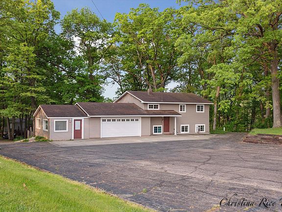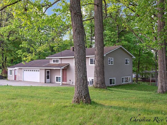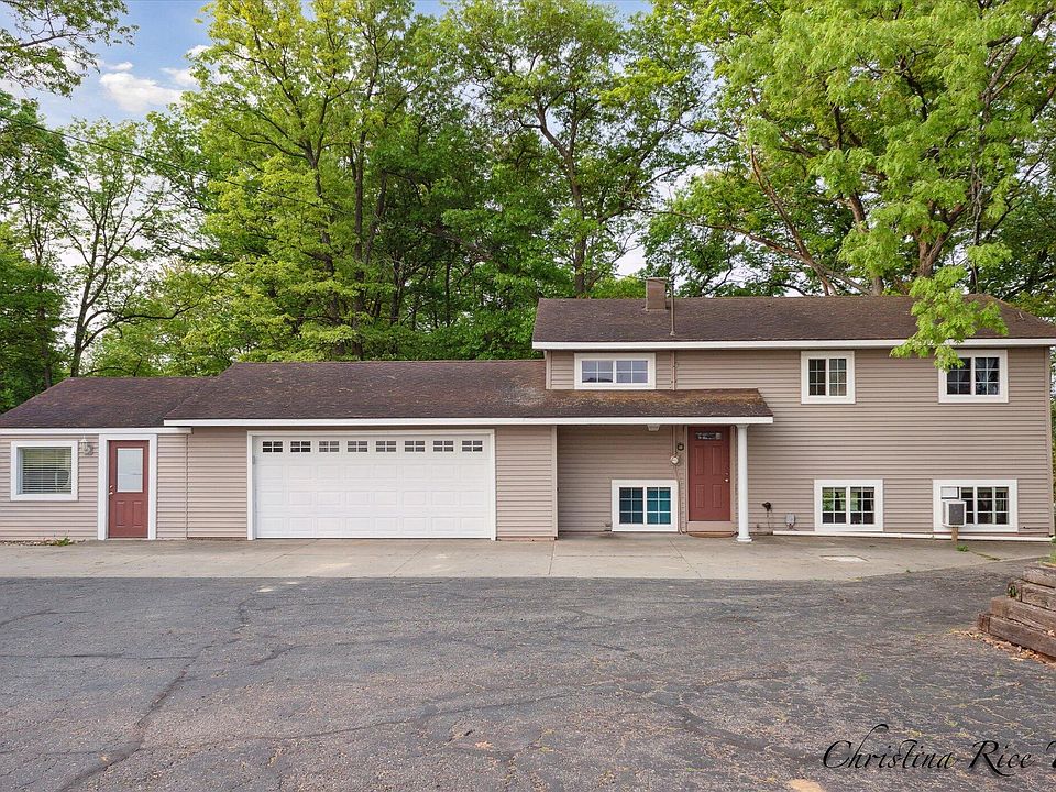 Welcome to this well maintained 5 bedroom 2 bath home just outside of Greenville! Cozy living room walks out to a fenced in backyard, adorable kitchen and dining area with a snack bar (all appliances stay with the home!), main floor laundry/full bath and a primary bedroom on the main living floor. Upstairs you will find 4 bedrooms and be ready to be impressed with their large size! Stunning real hardwood floors throughout and a 2nd full bath. Oversized 2 stall attached garage. The attached space on the side of the garage can be used for a business/office area! New features include a newer well, boiler, water heater and dryer. Schedule your tour to see this home today!