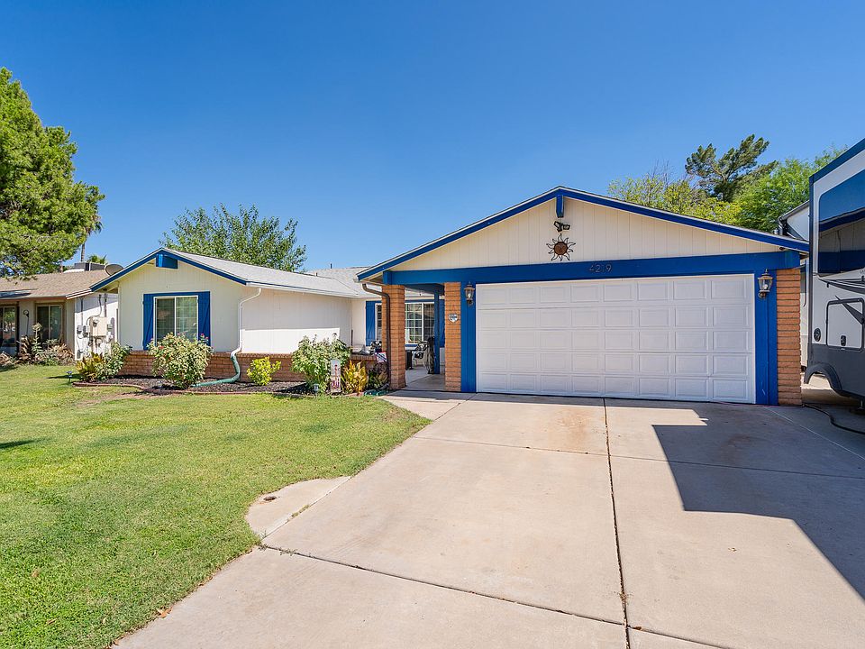 Large diving pool, RV parking with concrete pad extending full length of home - portion behind RV gate is covered, grass in front and back yard with full irrigation system. 10x10 concrete pad in backyard for canopy/BBQ/hot tub/sitting area. 2017 major improvements: - Painted exterior of home - Painted and installed cabinetry in laundry room. - Painted and minor improvements in full bathroom. 2016 major improvements: - Added concrete pad for front courtyard. - New paint in garage. - Added stairs to attic and built shelving for attic storage. - Installed ceiling fan in living room. 2014 major improvements: - Full kitchen remodel with dark mocha cabinets, upgraded granite counter tops with full height granite backsplash and windowsill, x-large 4x6.9 granite island with cabinets on both sides and room for bar chairs. - Removed all flooring in living, kitchen, dining, and hallway and replaced with wood style ceramic tile. - New paint in living, dining, kitchen, and hallway. - Installed wood trim for floor trim, windows, and doors in main living areas and hallway. - New carpet installed in all bedrooms. 2011 major improvements: - Replaced all windows with energy efficient vinyl double pane windows with internal grids. - New paint in master, master bath, bedroom 2, and bedroom 3. - Replaced original internal doors replaced with 4 panel doors. - Replaced all bedroom ceiling fans. - Added Cat 5e data cabling throughout home. - Added fiberglass R-30 insulation throughout full attic area making it over R-40 with existing insulation. 2010 major improvements: - Installed new Trane 16/18 sear multi-stage split system w/ variable speed fan w/ 10 year Trane warranty. - Full shingle roof removal and replacement. - Electrical box changed from 100-200amp. - 10x10 concrete pad installed in backyard. - Replaced Arcadia door with French doors with internal blinds and side lights to back porch.