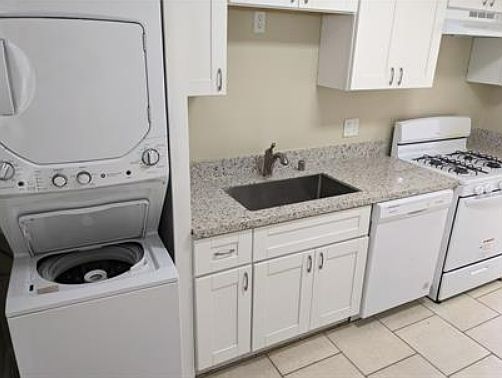 Enjoy comfortable living with modern amenities, including a gas stove, tiled floors, ceiling fans, and a mini-split AC unit for perfect climate control. The bedrooms feature larger, walk-in closets for ample storage, and the convenient stackable washer and dryer in the kitchen means no more trips to the laundromat. Step outside to your private, enclosed front patio, perfect for relaxing.