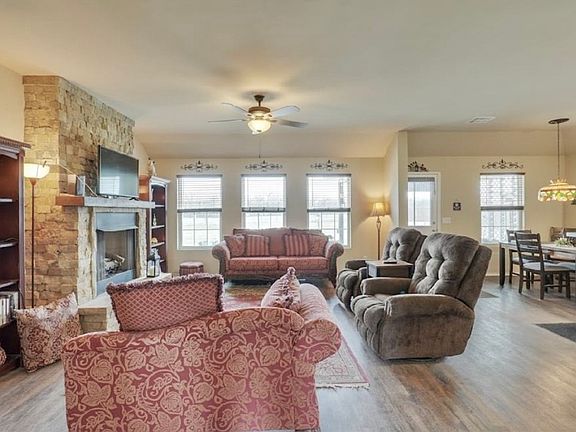 Welcome to your future home located in the popular North Rock Creek School District. This stunning 4-bedroom, 2-bath residence boasts an inviting ambiance with soaring 9-foot ceilings throughout, creating a spacious and airy feel. Situated on a generous .63-acre lot, this property offers the perfect blend of privacy and accessibility, with paved roads and easy highway access for your convenience. Step inside and be captivated by the custom upgrades, including a charming stone gas fireplace that serves as a focal point in the living area, perfect for cozy gatherings. The home features fully bricked exterior, enhancing its curb appeal while ensuring durability. Enjoy tranquil views of the picturesque pond from your oversized covered back patio, an ideal spot for outdoor entertaining or simply unwinding after a long day. The property is fully fenced, providing a secure environment for all to roam and play freely. Don't miss this opportunity to own a beautifully upgraded home in a prime location, combining modern comforts with serene living. Schedule your showing today!