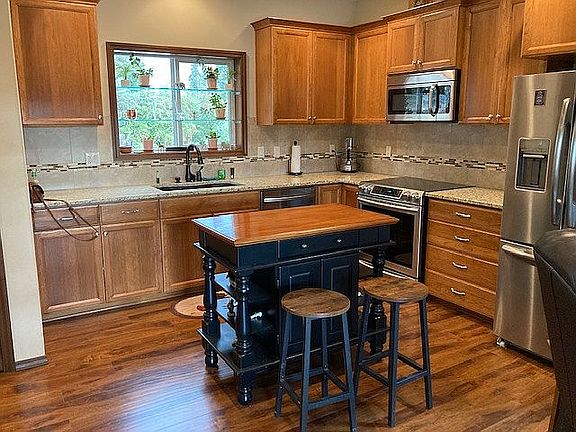 Beautiful quality custom built home in a convenient location. This home has a wonderful great room layout with wood floors, 9 foot ceilings, beautiful kitchen cabinets, granite counter tops, pantry closet, all new stainless appliances including an induction cooktop. There is a half bath located off the living room nook. Step outside the slider door to a large deck with beautiful views. Newly installed level and rocked side yard with fire pit, trees and spiral stairway access. Newly installed 10' x 8' Tuff Shed barn on upper side yard by garage. The daylight basement offers 3 bedrooms and 2 full baths. The master suite has a door to outside, large walk in closet, two sink vanity, soaking tub, toilet closet, linen closet and a large two seat shower with new glass bypass door enclosure. The hallway full bathroom has a shower/tub with new glass bypass door enclosure, one sink vanity, toilet and linen closet. Laundry is conveniently located by the bedrooms. House sale will include two brand new front load washer and dryer units on pedestals and all kitchen appliances. Attached garage is deep and fits a full-size vehicle. Heat pump offers AC during the hot summer months. NO REALTORS TERMS: Cash or Traditional Financing PLEASE CONTACT VIA TEXT OR EMAIL for a showing k72jackson@gmail.com
