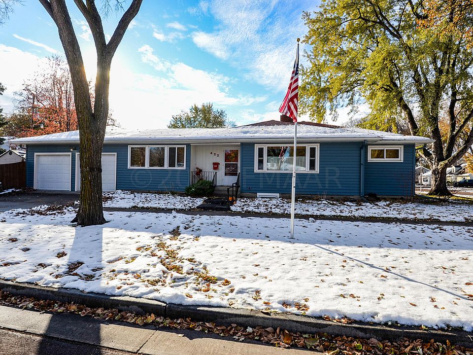 Character and charm abound in this North Fargo rambler! Enjoy 3 bedrooms, 2 bathrooms, 2 attached garage stalls, and 2400+ sqft of living space. Fall in love with beautiful refinished hardwood floors, two main floor living rooms, two main floor bedrooms, tiled shower in main floor bath, cozy gas fireplace, and updated kitchen! Additionally, 2 egress windows were added in the basement to make a 3rd bedroom and additional living space! The exterior of the house is just as fantastic- boasting steel siding, NEW roof, patio, storage shed, and large fully fenced yard with beautiful mature trees! A great house that will make for an even better HOME!