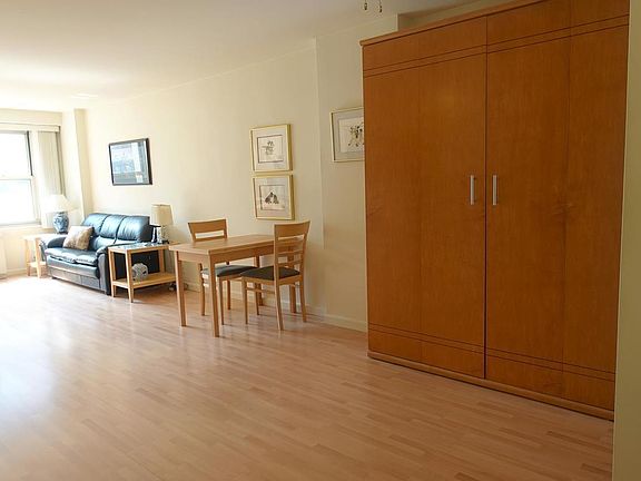 NO FEE! Move in ready, quiet and sunny, renovated studio apartment. Eastern exposure overlooking a newly renovated tree-filled green space/park. This lovely home features beautiful floors throughout and a renovated kitchen and bath. The kitchen includes a dishwasher and expansive counter and cabinet space. Large living/dining area can fit a living room set as well as a dining room table and chairs. Sleeping area features a beautiful custom wood Murphy bed (fits a queen size mattress - mattress is not included). There is also a cozy office space with a built in desk and closet. This centrally located home features central air conditioning and heat, included in rent. This well managed building is convenient to all transportation, great shopping including Fairway, Trader Joe's and a new Target! Large laundry facilities on the basement level, Citi bikes right outside the building back door, on-site Property Management office and Resident Manager/Super. New York Towers is a full service building with 24/7 doorman and Concierge located near Madison Square Park, Union Square, NYU Dental and Medical Campus, Gramercy Park, NoMad, Gramercy, Flatiron and an easy commute to mid-town and Financial District. Sublets: 1 year lease with option for year 2. 1 month security deposit and first month rent due on date of board meeting/interview. There is a sublease application including the following fees: move in fee $200, coop application fee $130, sublease application processing fee $250, digital submission fee $45, credit report fee $100 per applicant. Guarantors are welcome. Next board interview admissions date 7/9, board application package due 6/18; Move in available 8/1.