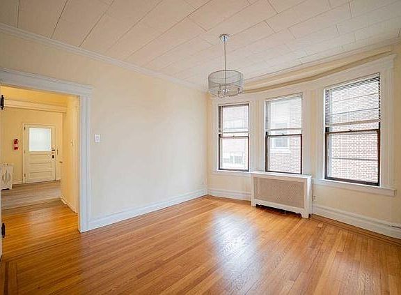 Large, spacious & bright 6 room, 2 bedroom, 2nd floor apartment, which includes heat, laundry hook ups in basement, has newer bath, den (perfect for work from home), living rm, dining rm & pantry. Recently painted and refinished hardwood floors. New windows. Large eat in kitchen w/walk in pantry, includes refrigerator (working but as is). Apartment has front and rear entrance. Center of town location near PATH train to NYC. No smoking of any kind on premises. Street parking only. No pets. Tenant supplies own cooking gas, hot water & electric. No use of yard. Landlord requires application, credit check, and proof of ability to pay rent. Landlord provides heat. Tenant pays for hot water. Month and half security depost and one month broker's fee required. No smoking of any kind on premises.