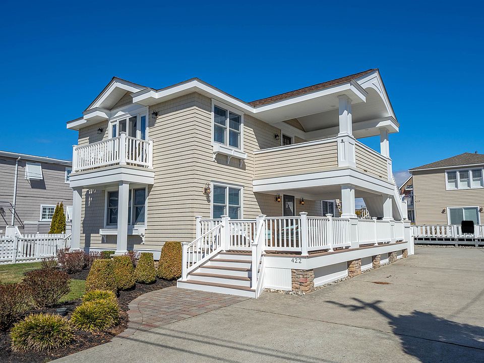 Attractively renovated AND water views! This unique 2nd floor condominium is located in a charming residential neighborhood. Convenient to popular downtown Stone Harbor boutiques and restaurants. Spacious great room with plenty of natural light. Elegant kitchen with all modern appliances. Bay and sunset views from the dining area, as well as the front balcony. Additional outdoor spaces include the private 2nd floor covered porch with ample seating, and a lower-level patio (exclusive for this unit) with a gas grill, 2 loungers and table/ chairs for outside dining. The king bedroom has a closet and attached half bath. The guest bedroom has 2 single beds plus a closet. The newer washer/dryer and the on demand (electric) water heater are located in the hall bathroom. The large rear yard shed is shared with the 1st floor back unit owner. Each unit has a designated off-street parking space. Bay View Condominium is a 4-unit association. To be sold completely furnished and turnkey, with the exception of the round hallway mirror and the Stone Harbor photo. Seller may elect to participate in a 1031 Tax Deferred Exchange (at no expense or liability to the buyer). Very popular vacation rental property with 2022 gross rental income of $43,950. For 2023, $35,150 gross income booked to date. Owner has a tenant April 26- May 2 (for a family wedding). See rental schedule in associated docs.