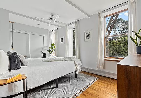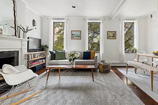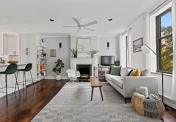 This sun-drenched, spacious one-bedroom, one-bathroom condop in a quintessential three-unit sweet brownstone is absolutely beautiful. The attention to detail that balances crisp, modern style with pre-war charm is noticeable immediately upon entering the apartment. There are six oversized windows in this floor-through apartment that overlook the radiant trees of historic Boerum Hill and that bathes the apartment in the most spectacular light. The serene living/dining area boasts a wood burning fireplace, Schoolhouse Electric and recessed lighting, and an open floor plan, perfect for everyday living and entertaining. The extra-large living room can seamlessly be converted into a separate office or nursery. Cooking is made easy in the meticulously-renovated brand new kitchen, with plenty of counter and storage space, GE/LG stainless steel appliances, and an over-sized island with seating for company while you cook (or for informal dining). Shaker-style cabinets line the hall between the kitchen and bedroom for more storage and, if that's not enough, there is a free 9x6 storage space in the basement. The south-facing bright king-sized bedroom can easily fit your work-from-home space. The apartment also features a new bathroom, hardwood oak floors, high ceilings, and the ability to install a W/D. Sorry, the cat doesn't come with the apartment, but bring your own b/c pets are allowed (upon board approval). The first open house is on Halloween, Sunday, 10/31 - there will be treats.