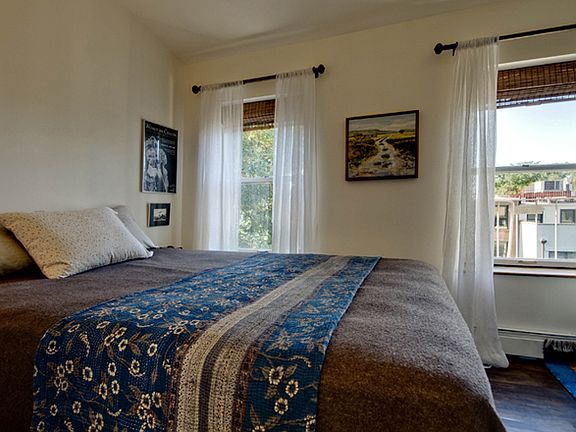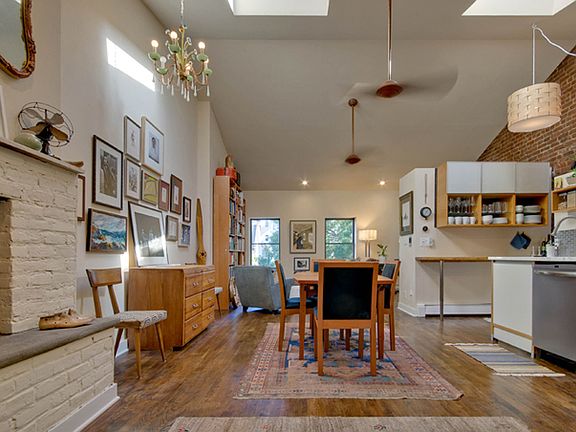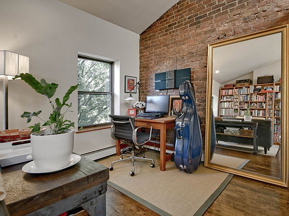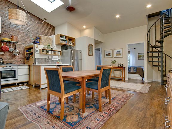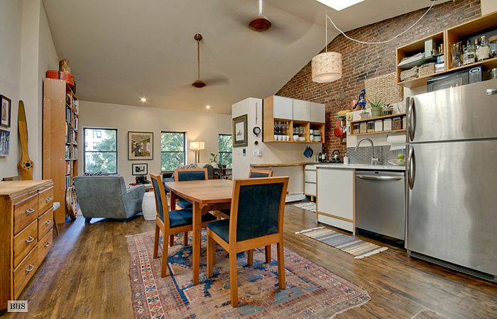 Loft-like and renovated townhouse top floor in Boerum Hill. Lots to love, including your own private roof deck with 360 degree views of Brooklyn and beyond. Flooded with light, this one bedroom with office alcove has soaring ceiling height, six windows and two skylights. Details include hardwood floors, exposed brick, wood-burning fireplace, open kitchen with dishwasher and laundry and storage in building. BAM, Barclays Center, shops and restaurants all nearby. A/C/G/2/3/4/5/D/B/Q/R/F trains within 3 blocks.