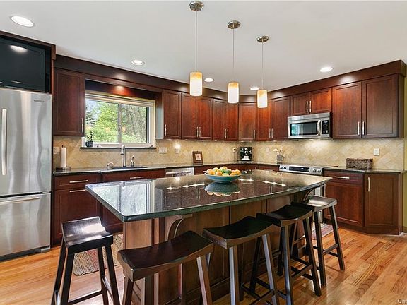 Stunning mint condition Contemporary home, beautiful Level Lot - gorgeous Heated In-Ground Pool w/custom finishes - must see! Large Updated Granite Eat-In Kitchen w/Stainless Appliances, Tons of Cabinets & Counter Seating for 5. Living Room w/Cathedral Ceiling & Skylights opens to Dining Room - Sliding Glass Doors out to amazing Wrap-Around Deck from BOTH Kitchen & Dining Room! Deck overlooks incredible Pool, surrounded by lovely Patio. Beautiful Master Bedroom Suite w/Full Bath + His/Hers Walk-In Closets also opens to Deck! Two more spacious Bedrooms & Full Hall Bath. Gorgeous Hardwood Floors. Walk-Up Attic/Loft Storage. Lower Level Family Room w/Walk-Out to Patio + large deck, both just steps to the Pool. Amazing Outdoor Living Area, lovingly landscaped- perfect for Entertaining. Den, Full Bath & Laundry also downstairs + 2-Car Attached Garage. New Central AC System (2019); New Roof (2019); New Siding/Gutters/Windows (2014). Taxes shown do not reflect Basic STAR Deduction of $1050.40