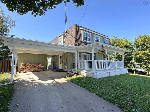 Welcome to this charming four-bedroom, two-bathroom home in the highly sought-after West Side of New Glasgow. From the moment you arrive, the distinctive mansard roof makes a statement offering timeless elegance, architectural character, and the bonus of additional living space. Pull into the concrete driveway and under the 17x20 carport, and you’ll instantly feel at home. The expansive covered veranda invites you to enjoy your morning coffee or unwind at day’s end. Inside, the spacious eat-in kitchen boasts beautifully detailed maple cabinetry and brand-new appliances. The open-concept living and dining area features a cozy wood-burning fireplace, perfect for chilly winter evenings, while a convenient half bath completes the main level. Downstairs, a large rec room with a wood stove provides the ideal gathering spot, along with an additional office/den for added flexibility. This home has seen many thoughtful updates in the last few years, including board and batten vinyl siding, new roof boards and shingles, a re-topped chimney, and three new heat pumps—one on each level for efficient comfort. Outside, there is a chain-link fence ensures privacy, while a concrete patio makes backyard entertaining easy. Offering both style and practicality, this home is perfectly suited for a growing family or anyone seeking space, charm, and a prime location. Don’t miss this wonderful opportunity!