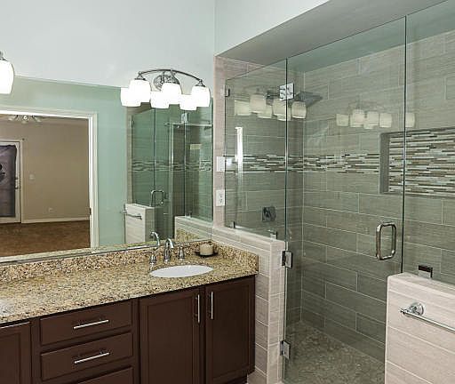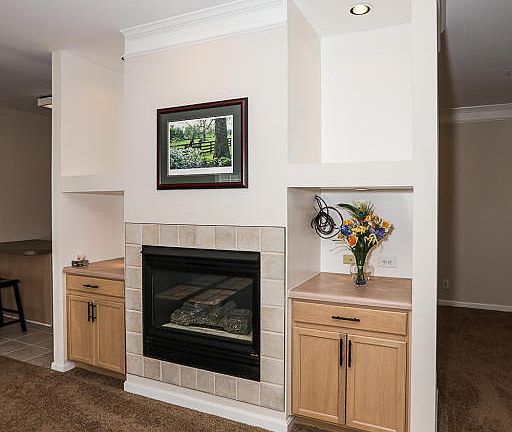 Wonderfully updated 2nd floor condo with attached garage! The spacious great room showcases a gas fireplace flanked with built-ins and opens to the dining area and a gorgeous kitchen with tile floors and upgraded cabinets. The master suite has a completely renovated bathroom that boasts a walk-in shower with floor to ceiling tile, frameless glass shower surround and dual rain shower heads as well as a huge dual vanity. So many spa like luxuries in this beautiful space! An additional spacious bedrooms, an updated guest bathroom and newer carpet and paint throughout. The furnace, A/C and water heater are all less than 3 years old! Almost 1500 square feet of living space in a condo convenient to restaurants, shopping and expressways. Call today for your private showing!
