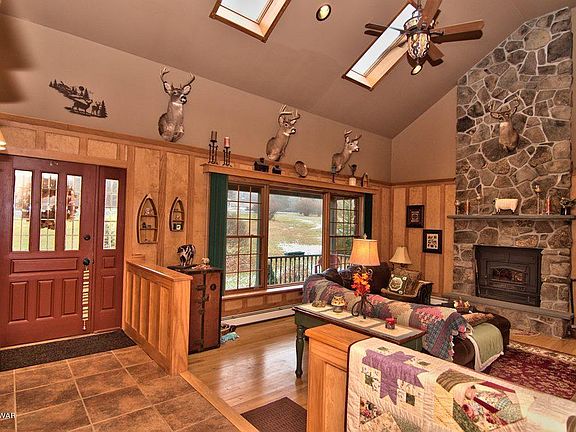 Incredible, Private, 20 Acre Estate with Custom Ranch Home in Hawley! Take a look at this spectacular, 4 bedroom, 3 1/2 bath home featuring beautiful hardwood floors, cathedral ceilings, impressive Chef's Kitchen with large, granite center island and wood burning fireplace, Formal Dining room with tongue and groove ceiling and Spacious Living Room with Floor to Ceiling Stone Fireplace! Enjoy the pristine Master Suite, 3 additional large bedrooms and 2 additional baths! Lower Level includes awesome Family Room/ Theater with surround sound, huge Great Room with custom Pine Wet Bar and propane fireplace! Sit on the covered front porch and enjoy the private setting or entertain on the back deck!
