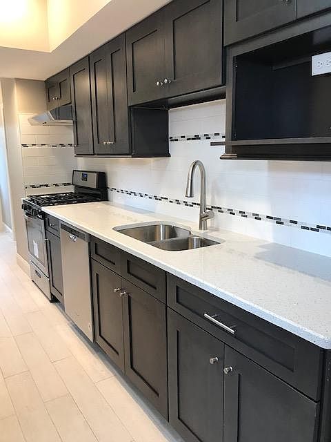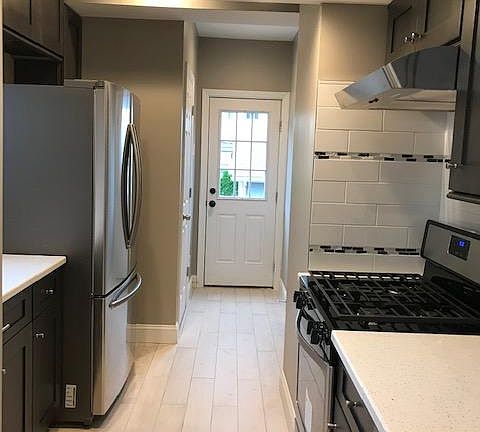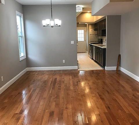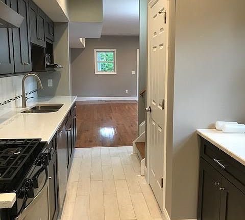 Beautifully renovated townhouse in a beautiful neighborhood of a top school district; short walk to NYC train/bus, downtown, and all schools; kitchen with lots of cabinets, stainless steel appliances, quartz counter top; bright living room and dining room; powder room on first floor; large master bedroom with generous closet space; one additional bedrooms and a full bath with double sink on the second floor; large family room, two additional bedrooms, a full bath, and tons of storage space in attic; hardwood floor through-out; central AC; forced air gas heating; full basement with tiled floor; washer/dryer hookups in basement; designated driveway parking; private garage and yard space; 1.5 mo security deposit Please text/call to arrange your private showing (one of the owners has NJ RE license) 1 year or longer