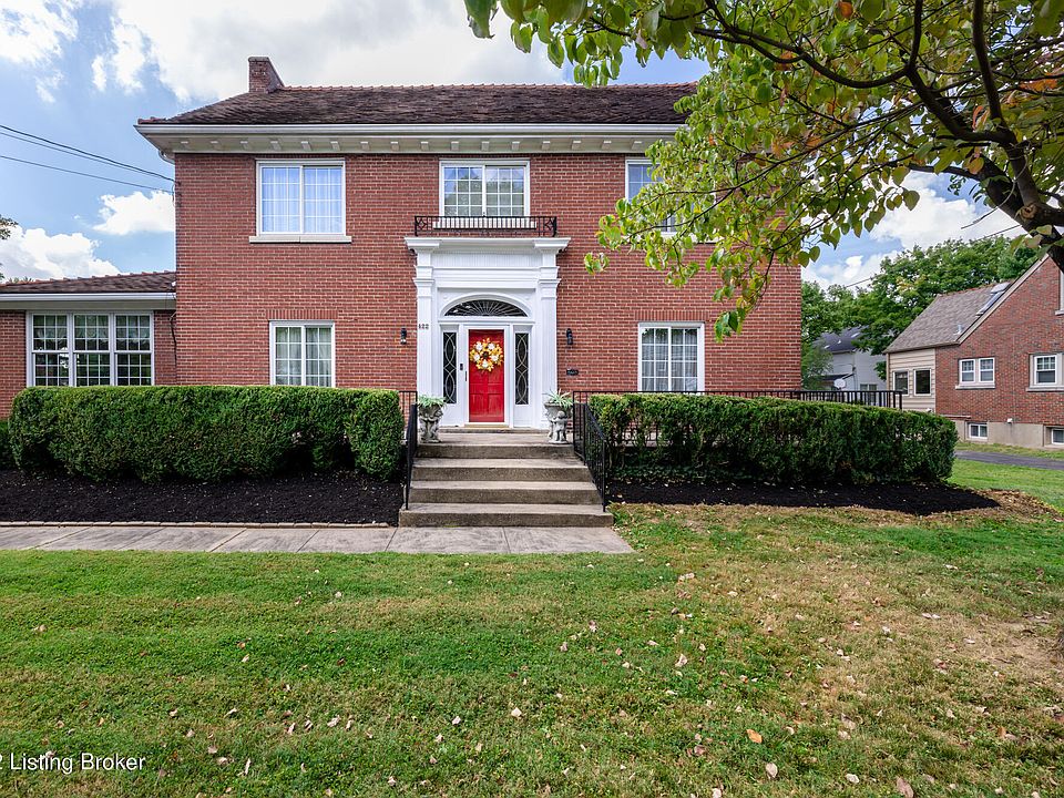Rare opportunity to own this elegant 2 story which has been lovingly cared for and owned by the same family since 1979, Leaded glass flank the front doorway and the wide entry hall where inlaid hardwood flooring sparkles. Features include tall ceilings, crown moldings, large rooms, and double sided fireplace which is shared between living room and sunroom. Banquet size dining room flows into the breakfast room and kitchen. Laundry room and pantry space is closeted next to kitchen itself. While the kitchen was updated with white custom cabinets years back, it awaits your creative touch and ideas today. 1st floor ½ bath has been updated. The stairs to the 2nd floor offer landing with sitting area Upstairs you'll be pleased with the 4 generous size bedrooms and 2 full still stylish baths. This is a very unique Southern colonel offering in most convenient St. Matthews area. Note 3 car garage and large lot.