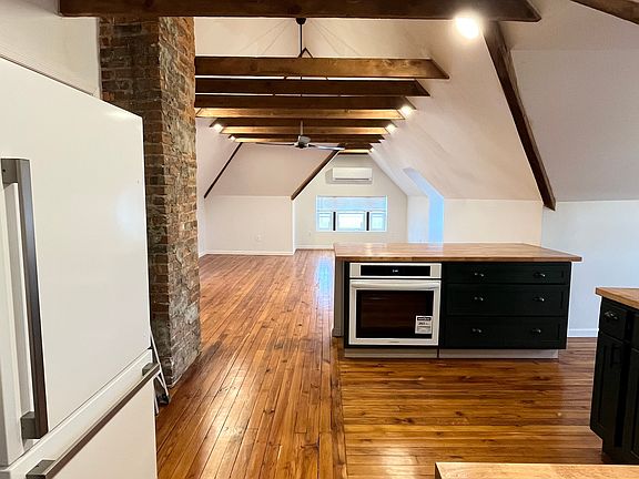 Historic 2-Bedroom Victorian Apartment in the Heart of Downtown New Cumberland Step into timeless charm and modern comfort with this beautifully renovated third-floor apartment in an 1897 Victorian home. Located in the vibrant heart of downtown New Cumberland, you'll be just blocks away from everything you need grocery stores, boutiques, restaurants, bars, a laundromat, and the historic West Shore Theater. From the moment you enter the home, you're greeted by a stunning staircase that hints at the character throughout. Inside the apartment, vaulted ceilings, exposed beams, refinished wood floors, and original brickwork come together to create a warm and inviting space full of vintage appeal. The open-concept great room includes a spacious living area, bar seating, dining room, and fully updated kitchen. The kitchen features brand new mission-style green cabinetry, butcher block countertops, and white appliances including a refrigerator, separate cooktop, and wall oven all chosen to match the home's historic character. The bathroom is equally impressive, with a vintage-inspired converted dresser vanity and vessel sink, classic subway tile around the bathtub, and elegant white marble hexagon flooring. The primary bedroom features high vaulted ceilings and exposed beams, while the second bedroom offers plenty of space perfect as an additional bedroom or home office. Additional Details: Water, sewer, landscaping, and trash: $150/month Tenant pays electric and cable/internet On-street parking available; garage space optional for additional fee Credit score of 600+ required Income must be 3x monthly rent No past evictions Criminal history reviewed during application Section 8 not accepted Don't miss your chance to live in a truly unique space full of history and style schedule your tour today! Water, sewer, landscaping, and trash: $150/month Tenant pays electric and cable/internet On-street parking available; garage space optional for additional fee Credit score of 600+ required Income must be 3x monthly rent No past evictions Criminal history reviewed during application Section 8 not accepted