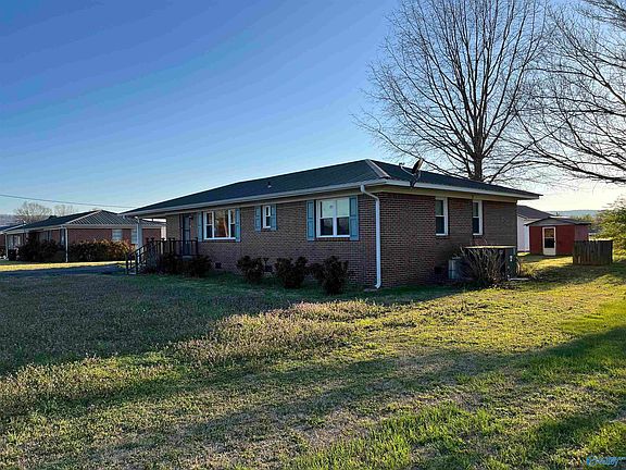Don't miss this great opportunity! This beautiful brick ranch style home with metal roof sits on almost a half acre. The Home features 2 bed/1 baths; and a rear 11 X 15 screened in porch perfect for sitting and entertaining guest outdoors. There is a 30 X 24 detached garage workshop with electricity, also has a one car carport and a two car carport, Blacktop paved driveway, all new vinyl windows, hardwoods under the carpet in living room. being sold as is because it needs a few updates. Located approximately 10 min. from Hampton Cove, 15 min. from Lake Guntersville, and 20 min. from Huntsville...this home is a must see!