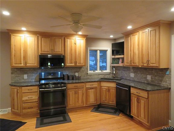 Beautifully updated North Utica Ranch offering a light, bright and open floor plan, gorgeous granite kitchen with stainless appliances and recessed lighting, gleaming hardwood floors, warm and inviting finished lower level with gas fireplace, bar and 1/2 bath, beautifully landscaped fenced yard with Inground Pool, concrete patio, large screen TV and 12 x 16 shed. Additional updates include newer roof(2015).