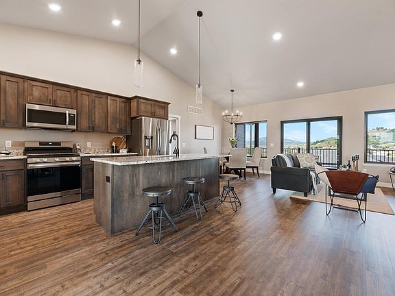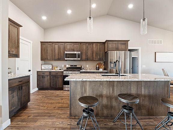Call or Text Listing Agent - Sue Cramer - The Real Estate Center of Spearfish - 605-645-2391 for more information. This home has 5 bedrooms. The owner's suite is on one side of the house with 2 other bedrooms and a bath on the other. Owner's suite has a private bath with 2 full separate sink vanities, tile walk-in shower, 8x8 walk-in closet & a great view! The main floor has the open concept living room, dining and kitchen with a wall of windows & patio doors to take in the awesome view of Crow Peak & Lookout Mountain. Stainless steel appliances, soft close drawers & cabinets, pull out drawers & a large walk-in pantry, granite countertops with bar seating make this a great home for entertaining. The floors are Luxury Vinyl Planking for durability. Gas-log fireplace to take the chill off the winter days. The 12x22 deck off the living room is covered to enjoy the outdoors regardless of the weather. Downstairs you find a massive entertaining room waiting for the new owner to put their design to it. Patio doors walk out to a large patio. There are 2 additional bedrooms with walk-in closets & a bath on this level. All the bedrooms have ceiling fans as well as the living room. Besides the 15x18 storage room, this house has so many closets. Tankless on demand gas water heater. Forced air natural gas furnace has dual thermostats, one for the main floor and one for the basement. Central air-conditioning. The 26x32 garage is insulated, sheetrocked and heated.