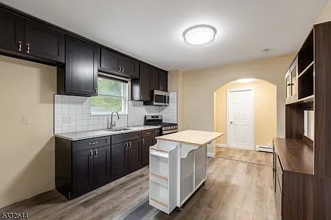 Apartment 1 at 422 Catherine Street in South Amboy is a spacious and freshly updated 4-bedroom, 1.5-bath unit with plenty of natural light and modern finishes. The kitchen features granite countertops and sleek cabinetry, offering a clean and functional space for everyday living. The apartment includes updated flooring, recessed lighting, and freshly painted walls throughout, giving it a bright and contemporary feel. A fully finished basement provides bonus space that's perfect for a home office, rec room, or additional storage, and includes a convenient half bath. Comfort is maintained year-round with baseboard heating and multiple A/C units, including mini-split and wall systems. Additional features include a private porch, and off-street parking for two vehicles. Located just minutes from the South Amboy train station and major highways, the apartment offers easy access to public transportation for convenient commuting. Owner pays for water. Renter is responsible for gas and electric. One and a half months' security deposit due at signing. No smoking allowed. No pets allowed except cats. One-year lease minimum. Off-street parking for two vehicles included.