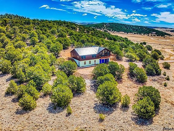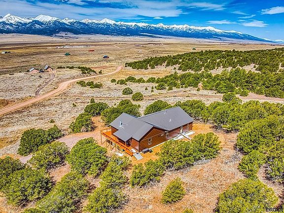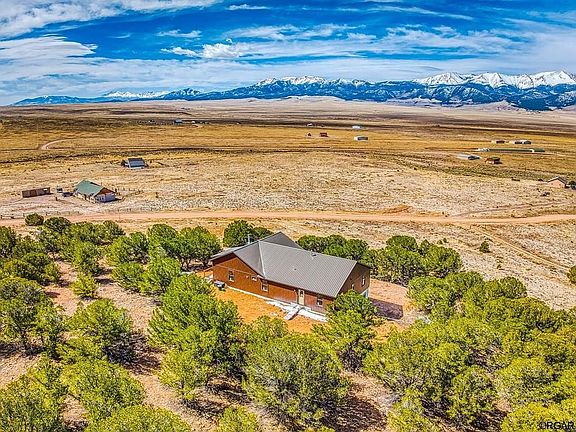 Almost done!!! Create instant sweat equity by finishing the final details on this beautiful home. Sellers health issues are interfering with their dreams of waking up to the awe inspiring views of the Sangre De Cristo mountains. The custom home offers over 2300 sqft of main level living space on full walkout unfinished basement for a total of over 4300 sqft. Main level includes 3 bedrooms, 2 baths plus there is a stub-in for 3rd bathroom in basement area. Perfectly set on over 6 acre lot to allow for incredible views of the inspiring snowcapped Sangre mountains from the many expansive windows in the home. Open great room design with towering vaulted ceiling, warming wood burning stove, artistic kitchen with copper farm sink, handcrafted wood countertops and quality appliances. Designed with the future in mind with extra wide doors & hallways for added accessibility including a framed area in laundry room for a platform lift from Afordablelift.com if needed later in life. Quality construction & efficiency throughout including Insulated concrete form foundation, Trulog steel siding, metal roof, 2 x 6 walls, R-38 insulation, multiple heating systems and don't miss the beautiful custom wood garage doors! Most of the materials needed to complete the final touches are included in the sale making this a minor self-finish project.