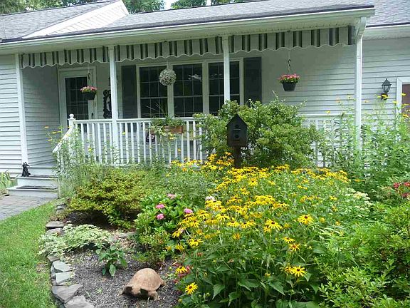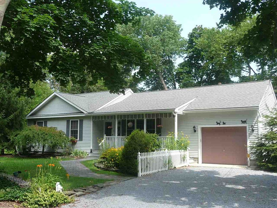 Sun, Warmth and natural woods blend beautifully in this lovely three bedroom, two bath ranch style home. Nestled on just under an acre located in a secluded setting yet close to town features open living room with cathedral ceilings, master suite with full bath, two addition bedrooms with plenty of storage. Home features oak flooring, open kitchen with breakfast bar, stainless steel Appliances and sliders to awning covered deck. Designed for easy living and outdoor entertaining. Huge fenced yard with shed and perennial gardens. Beautiful inside and out!