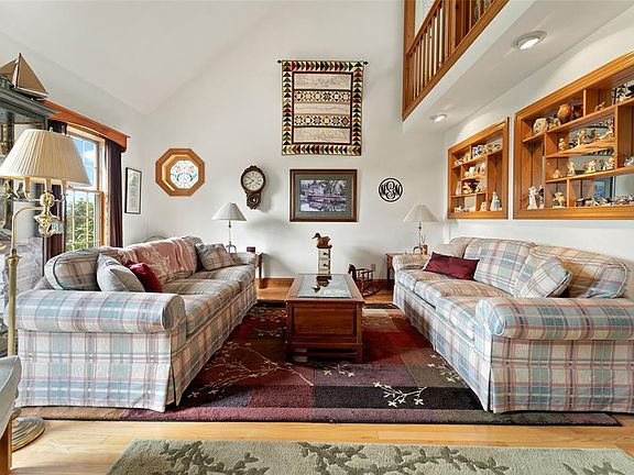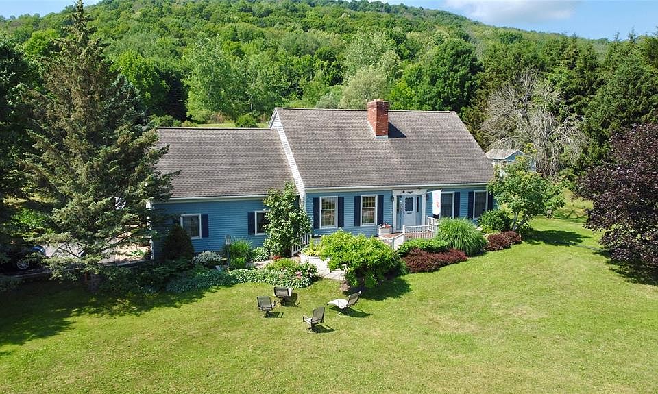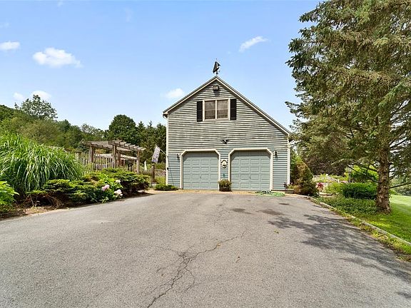 Beautiful home sits on over 8 gorgeous acres with a 1 acre pond. Large Cape with 3-4 bedrooms, 2 baths, 2 first floor bedrooms and laundry, large great room with fireplace and cathedral ceilings, Cozy loft and bonus room that is easily a 4th bedroom, Master suite, large walk in closet. Quality throughout this home includes hardwood floors and 6 panel oak doors throughout. Spacious Oak kitchen with large dining area leading to a beautiful outside oasis . Inground fiberglass pool, qui pond, extensive trex decking, pergola, Fenced area, two sheds, and beautifully landscaped all around plus Enjoy the Front deck and water fountain! Large lower level with pellet stove, pool table, storage, gym area and work shop space. New Geo star furnace, newer well pump, updated 200 amp service, 6 year old roof, and well pro water treatment system. Home sits back off road and you can enjoy access to the Jim Schug bike trail across the street. 20 Minutes to Cayuga Lake, Ithaca and Cortland.