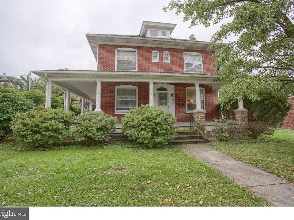 Lot's of possibilities with this home. It was the parsonage for the church and it has parking for 17 cars. The home is a well built brick home and has hard wood floors though out. Most of the rooms have been painted and all of the trim in the home is nice and white. The windows have been cleaned and have new blinds. This is a very large 5 bedroom home and it has one and a half baths. Leaded glass door are at the entrance to the dining room. The kitchen has white cabinets, with plenty of counter space. The property could be used as an office but the use should be approved by the Birdsboro Boro.