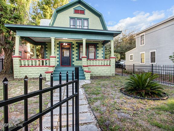 Come see this rare Dutch Colonial gem located in Historic Springfield. Offering two bedrooms and two and a half bathrooms, this beautiful home sits on an oversized 43-foot by 203-foot lot, providing plenty of space in one of Jacksonville's most beloved neighborhoods. The classic gambrel roofline and wide front porch set the tone for a home that stands out. Step inside to find a seamless blend of historic character and modern comfort. Trim work and period details pair effortlessly with an updated kitchen and renovated bathrooms that bring contemporary convenience to a vintage setting. The large rear deck is ideal for entertaining or relaxing, while the expansive backyard offers a wonderful sense of privacy and holds tremendous potential. Located just blocks from parks, coffee shops, local eateries, and the Main Street corridor, 422 East 3rd Street delivers on style, space, and location.