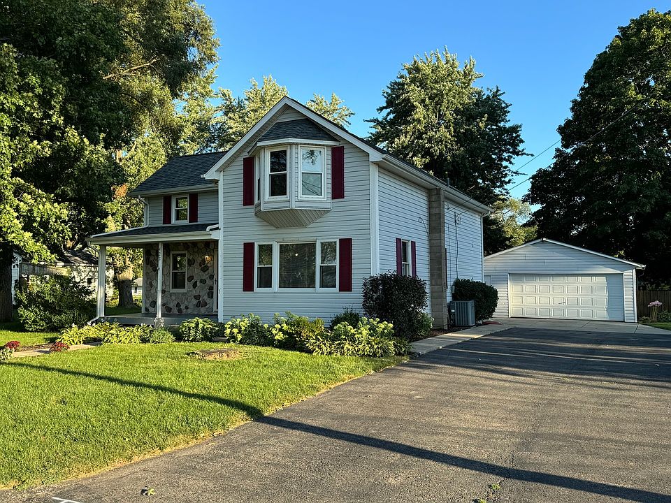 This charming two-story home reflects true pride of ownership and is move-in ready! It boasts 3 bedrooms, 2 baths, and a spacious living area. The eat-in kitchen is perfect for entertaining and all appliances are included. You'll also find a 2 1/2 car detached garage, along with a handy shed to the rear for extra storage. The property features well-maintained landscaping, ample parking space, a large yard that includes a cozy firepit area for entertaining, and fenced-in area with deck for privacy. (Roof was done in 2020) All appliances are sold AS IS! Call today for a showing!
