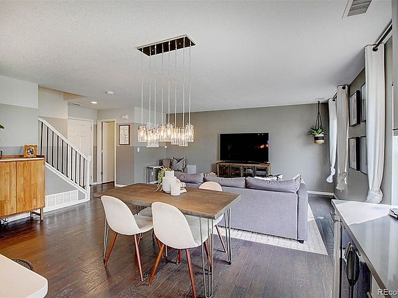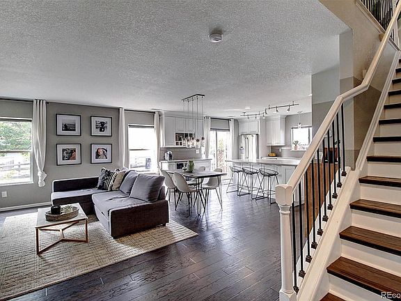 GORGEOUS 2-story, single-family home with tons of updates! Main level has a spacious open floor plan with Family Room, Dining area, and beautifully-remodeled Kitchen. Custom kitchen features Quartz countertops with decorative tile backsplash, bright white shaker cabinetry, high-end stainless-steel appliances with gas range. Top it off with a large center island and additional breakfast bar seating. You'll never run out of cabinet space with the custom drawers and cabinets on all sides of the island. This kitchen was made for entertaining and includes a custom "beverage station" that is even wired for a wine fridge! Home features gorgeous laminate-wood flooring throughout! Upper level has 3 Bedrooms, including the Master, which features walk-in closet, and fully remodeled spa-like bathroom. Set up a grill and patio furniture in the fenced back yard which backs to park and walking trails. Dog run for your furry family members! Irrigation system is perfect for your flowers and plants! Convenient to I-25, short commute to downtown Denver!