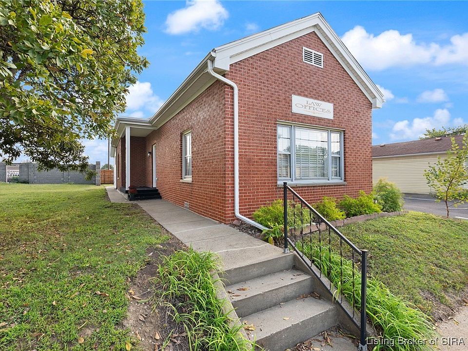 Completely remodeled and centrally located in the heart of Jeffersonville, this property offers exceptional versatility just one block from the Clark County Circuit Court building. Formerly used as a law office, it is zoned Commercial Neighborhood, allowing for both residential and commercial use. The interior showcases new hardwood floors, a modernized kitchen with appliances and an updated full bathroom. Significant improvements include new electrical, plumbing, fixtures, hot water tank, refrigerator, and stove. Multiple rooms provide flexibility to serve as offices, waiting areas, or bedrooms if used as a residence. Additional features include partial fencing in the backyard, a detached storage shed, and handicap-accessible amenities such as a ramp, wide doors, wall-mounted sink, and a curbless shower. Parking is available both on-street and in a free public lot nearby. With its extensive updates, adaptable layout, and prime downtown location, this property presents a unique opportunity in Jeffersonville. Square footage, taxes, and school systems should be independently verified by the buyer(s) or buyer’s agent if material to the purchase decision.