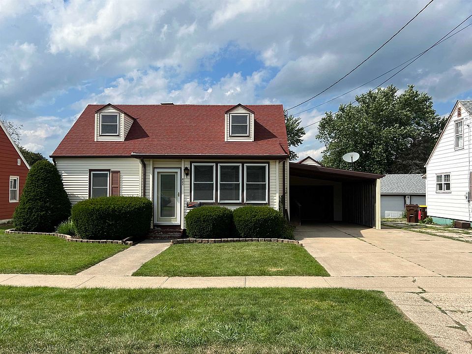 GREAT NEW PRICE!!!! Motivated Seller for this charming 3-4 bedroom 2 bath 1 1/2 story home in great location! Living room & spacious master suite addition with double closets (1 walk-in) & double vanity added in 1989. Eat-in kitchen with appliances that stay, new electric stove & built in microwave in 2021. Inviting front porch for entertaining with laminate flooring & wall of windows leading to an office or den. Another main floor bedroom & full bath complete the main floor. Upstairs you will find the opportunity for additional living space with cedar lined closets. Partially finished lower level with rec room, storage room, laundry & utility room. Welcoming back yard perfect for entertaining with concrete patio & garden shed for additional storage. Detached 1 car garage with opener & attached, enclosed car port, concrete drive. Vinyl siding & newer roof complete this move in ready home! Home warranty plan offered.
