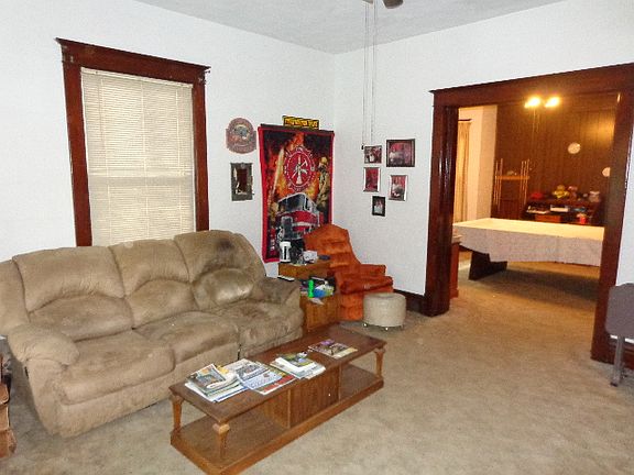 Roof and front porch new in 2015. 30X40 rec room addition once used as a tanning salon. Original woodwork, hardwood floors and built-in china cabinet. Upper level master has a 1/2 bath that was just remodeled. Some rooms have recently had the carpet removed to expose the wood floors. All appliances stay but are not warranted. Main floor laundry. Home backs up to a field. Flood insurance currently costs seller approximately $500 a year.