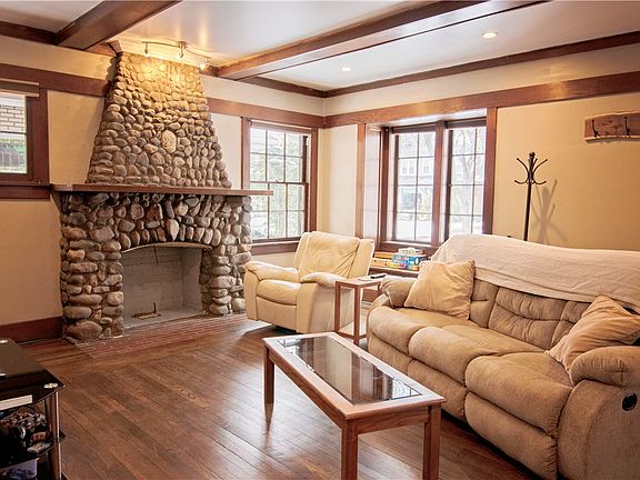 Envision yourself in this exceptional craftsman style home. The original classic style is still felt throughout this newly updated 3 story, 4 bedroom, 1 1/2 bath home. The spacious living room presents a grand stone fireplace. The open concept floor plan creates a perfect flow from the living area to the kitchen and dining area. To reach the upper level, you ascend a beautiful wooden staircase displaying two stained glass windows. Other features include: Dining room brick fireplace, newly refinished hardwood floors, a newly remodeled full bath, 1st floor laundry room and powder room, covered front and back porches, upstairs summer porch, some replacement windows, updated electrical, all new plumbing, deep walk out basement, new water heater, new wash sink, new gutters, detached garage and new paint.