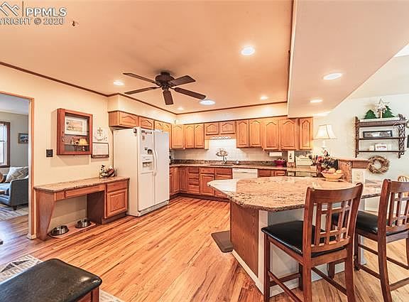 Beautiful Pleasant Valley home. Located on ½ acre for privacy with Colorado wildlife coming right to your back door. One level living with a private master bath attached to the master suit. Great room with vaulted ceilings and skylights throughout the home. All four bedrooms on the main level with large basement rec room with an additional bathroom for added play space. Open concept kitchen with granite countertops is a perfect hosting space. Perennial gardens in front and back are skillfully designed by master gardener to be low maintenance and come back year after year including native peach and apple trees. Home is just down the street from a neighborhood entrance to Garden of the Gods with a world class trail system. New roof installed 2020. New furnace to be installed on December 1. Exterior of home freshly painted 2019.
