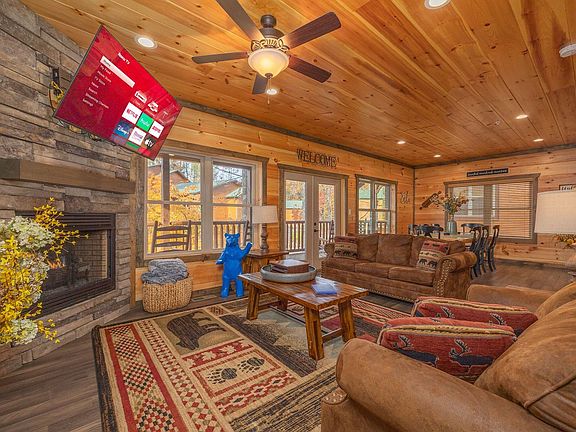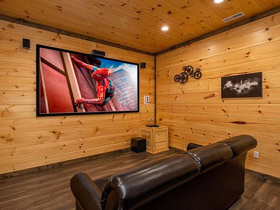 This 5-bedroom home in Gatlinburg, TN, offers everything you need for an amazing vacation. With a prime location, this spacious retreat features a hot tub, game room, movie room, and ample parking, making it ideal for families, friends, or group getaways. Nestled in the scenic beauty of Gatlinburg, this mountain haven blends luxury, comfort, and fun. The open-concept layout is filled with cozy mountain charm and thoughtful touches, with TVs in each bedroom for private unwinding. The game room offers a pool table, arcade games, and more, while the private movie room is perfect for film nights. The chef's kitchen is fully stocked with high-end stainless appliances, a large refrigerator, and ample cabinetry and cooking space, including a Keurig and drip coffee maker. Up to 2 dogs are allowed for $125 per stay, with a request for crate training and cleanup. Parking is available for up to 4 cars in the driveway. Located near popular attractions like the Gatlinburg Space Needle, Anakeesta, and the Great Smoky Mountains National Park, this home offers easy access to hiking trails, wildlife, and scenic drives. Nearby dining options include The Greenbrier Restaurant, The Peddler Steakhouse, and Delauder's BBQ. Renting a car is recommended to explore the area at your own pace. Check-in is at 4pm and check-out is at 10am. No parties are allowed, and violations may result in immediate termination of the stay. An exterior camera monitors the cleaning team for quality and security purposes. Guests must be 21 years or older to book this property. A guest verification process is required within 48 hours of booking confirmation, including signing a rental agreement and providing a valid ID and matching credit card. A non-refundable $55 damage waiver is required, covering accidental damage during your stay if reported before check-out.