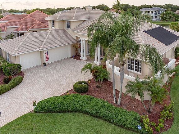 STELLAR CUSTOM BUILT JOYAL LAKEFRONT POOL HOME IN THE PRESTIGIOUS GATED COMMUNITY THE CLOISTERS. Newly installed electric and accordion STORM SHUTTERS! This meticulously maintained home boasts an open light & bright floor plan, with soaring ceilings, formal living room & family room with a cozy gas fire place. Enjoy spectacular pool, Jacuzzi & lake views from the spacious eat in kitchen which features granite counter tops, and bar seating. Downstairs master with French doors lead out totranquil pool area. Private downstairs en suite perfect for multi generational families. Additional 2 bedrooms upstairs, 1 full bath & loft area! AIRCONDITIONED 3 car garage! Summer kitchen with gas grill! Zoned for ''A'' rated schools. Close to beach! Schedule your showing today!