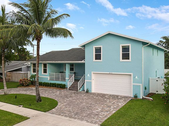Excellent Opportunity to own newer construction in North Palm Beach. 422 Harbour Rd was built in 2013, with all impact windows and CBS construction. This home boasts over 2900 square feet with a split bedroom floor plan. Offering an open kitchen and a large family room with 5 full bedrooms and 3 full bathrooms + a half guest bathroom! The home has a covered front porch and back patio offering tons of shade. Utilities are in place for your outdoor grill and summer kitchen on the back patio! The home offers plenty of parking space with a large circular driveway and a two car garage! This home is equipped with natural gas, cooking is great on the natural gas stove! Volume ceiling height, split bedroom floorplan, living room with a wet bar and guest bathroom, this home was well thought out... The back yard features a newer pool, artificial turf for low maintenance and is also fully fenced in. Location offers great proximity to North Palms parks, the boat ramps and marina, food trucks, library, public beach at lakeside park, newly built Country Club with pool and golf, and so much more! Come enjoy this newer home and space it offers in the best place to live under the sun!