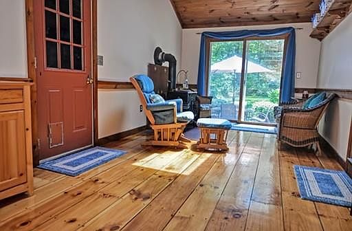 This Colonial Home sits on over 2 acres at the end of a cul-de-sac. There are many charming details including beamed ceilings, wood ceilings, recessed lighting & wide pine floors. When you enter through the finished breezeway, you find a vaulted wood ceiling with a skylight, wood stove & a slider to the patio. Step into the spacious eat in kitchen that opens up to a large Dining Room with chair rail. The Living Room features recessed lighting, a wood burning fireplace & French doors to the deck. There is a cozy Den off of the Living Room. A half bath with laundry completes the first floor. The second floor features a full bath with double vanity and 3 very spacious Bedrooms with wall to wall carpeting, ample closets & ceiling fans. The finished lower level offers a family room as well as a great home office with wood ceilings. There is a 2 car garage, private yard and koi pond. This home has been nicely maintained and offers many updates including the Roof, Hot Water Tank & Heating