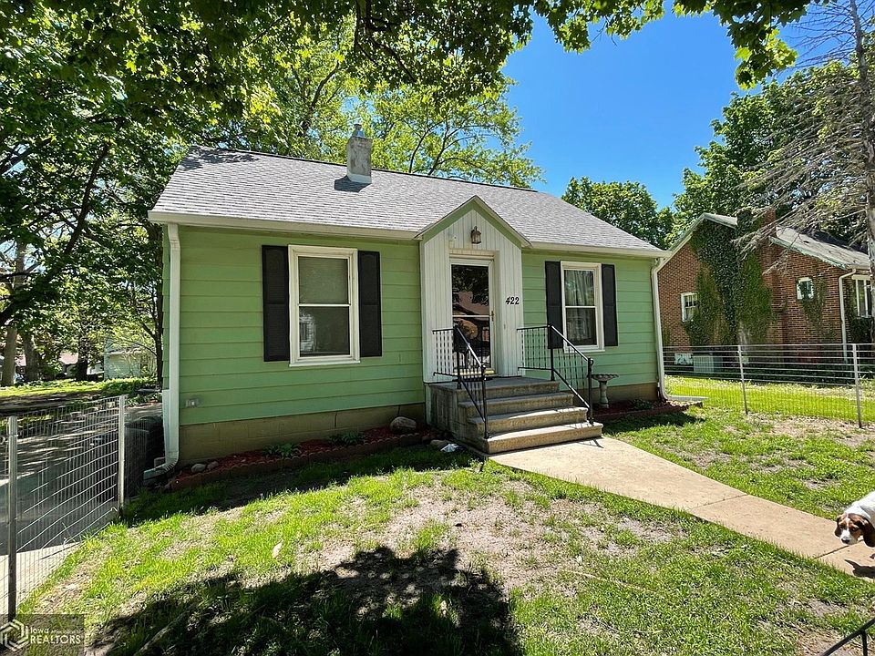 Drive down a tree lined street to a 2-3 bedroom house with front area fenced in for your favorite pet. House has siding with newer gutters and leave guard. Nice yard to relax. On the main level is the living room, eat in kitchen, two bedrooms and bath. The upper level has a bonus room, presently used as a bedroom. The lower level has the boiler, softener, hot water heater, and the washer and dryer. This area has also been used as a family room and exercise area. Assembly Park is 0.2 miles and the City Hall is 0.5 miles.