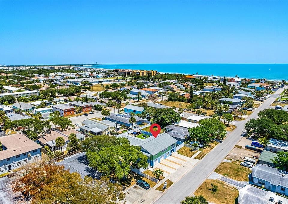 Under contract-accepting backup offers. Just a block from the ocean, this triplex presents a rare opportunity in one of Cape Canaveral's most desirable coastal neighborhoods. With over 4,500 square feet of interior living space on a double lot, this property combines strong rental income with endless flexibility. Each unit is fully furnished and features an updated kitchen with granite counters, stainless steel appliances, and open layouts designed for easy beachside living. The outdoor spaces transform this property into a true retreat complete with a heated pool, hot tubs, firepit, outdoor bar, and multiple lounging areas surrounded by tropical landscaping. Whether operated as a high-performing short-term rental portfolio, a live-and-earn opportunity, or converted into a private resort-style residence, this investment offers location, scale, and proven returns.